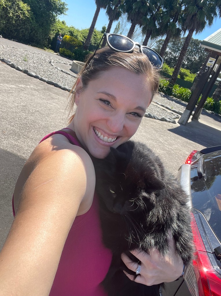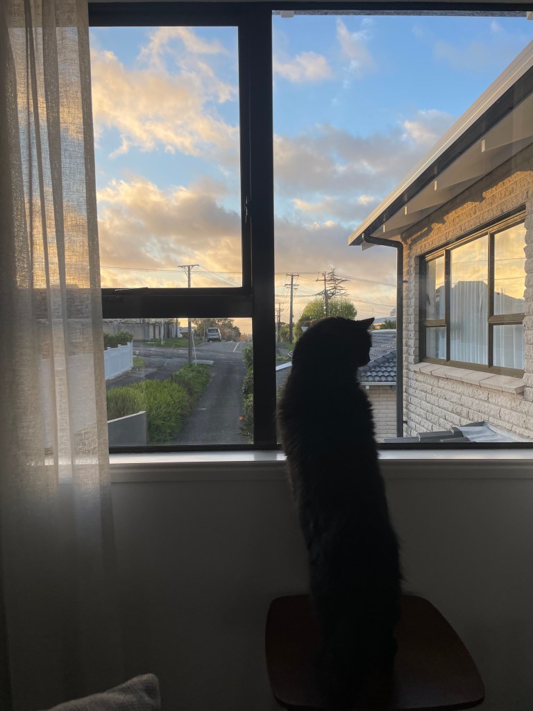 Unfortunately, all the snuggles and treats in the world can’t keep Nico from wanting to explore further. The wilderness is always calling to him, and the lack of screens on windows in New Zealand make it far too easy for him to escape. Not realizing the crack in our windows was big enough for him to fit through, we awoke on our second morning of him here to discover him lying in the grass in the backyard staring up at us as if to say, “Good morning, can I help you? Is there something you need?” How long was he outside? Likely all night. Did he seem ashamed or repentant? Absolutely not. Has he continued to try to climb out windows and escape this beautiful new home we’ve created for him? Every. Single. Day. Oh to be a cat owner…