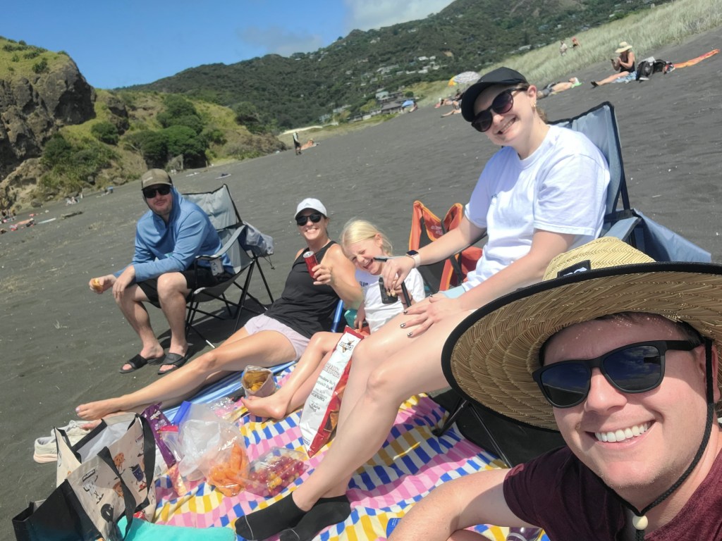 From the moment they landed (and I attacked Mary with the biggest hug I could muster), we hit the ground running. After showing them our home and giving them a glimpse of our local beach, we visited Muzza’s Pies in Birkenhead to try one of New Zealand’s classic dishes – the meat pie. Immediately after, we hit up Broke Boy Tacos for some delicious birria tacos and Birkenhead Brewing Company for an afternoon beer at our favorite local watering hole. Once Larsen was out of school, we trekked into the city to visit the Sky Tower and meet Austin for dinner at our favorite dining hub.