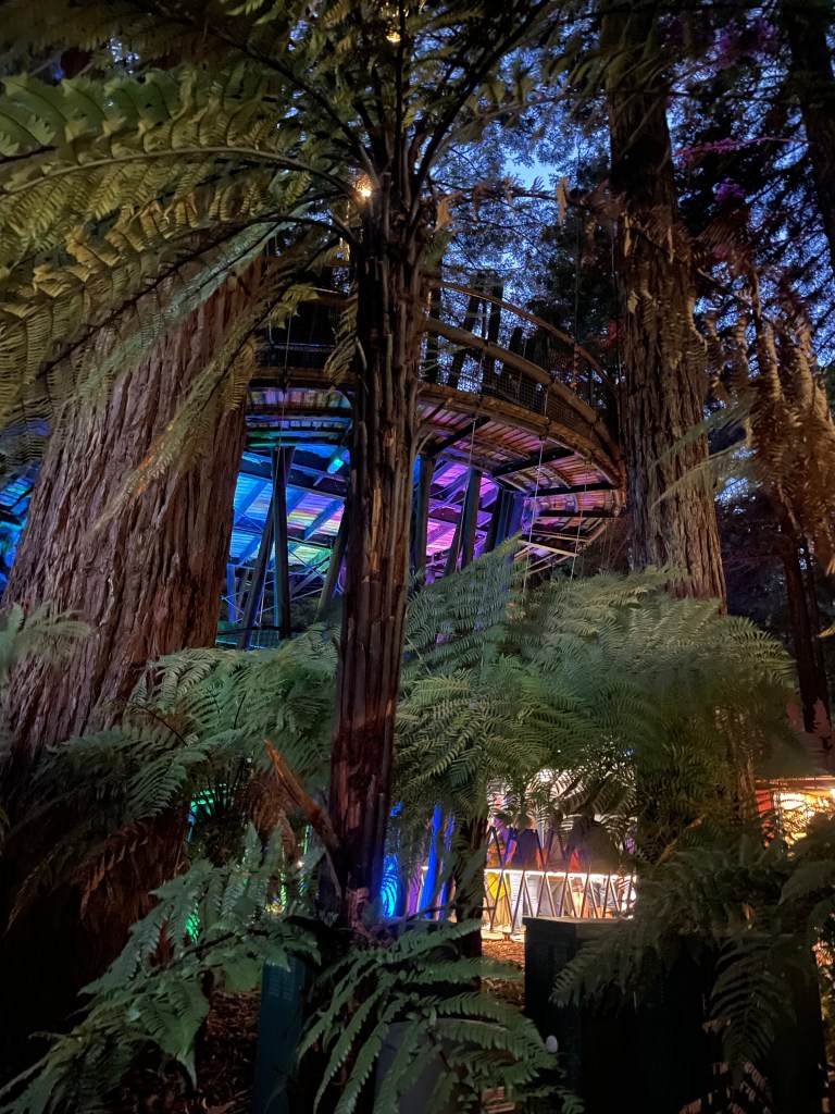 Though we were exhausted from a full day, we rallied for a nighttime tree walk in the Redwood Forest. Suspended above the forest floor, we walked amongst 75-meter redwood trees and enchanting lights, turning the forest into a magical experience. Our cameras failed to capture how mesmerizing the forest was, which allowed us to put our phones away and just be present for the moment. After our walk, we did a quick tour of a locally constructed glow worm cave, where thousands of glow worms lit up a small area, offering us the opportunity to see these remarkable creatures in action. While they were not in their natural habitat, it was surprising to see thousands of worms light up the dark cave in search of food. Nature never ceases to amaze me with its odd creations.