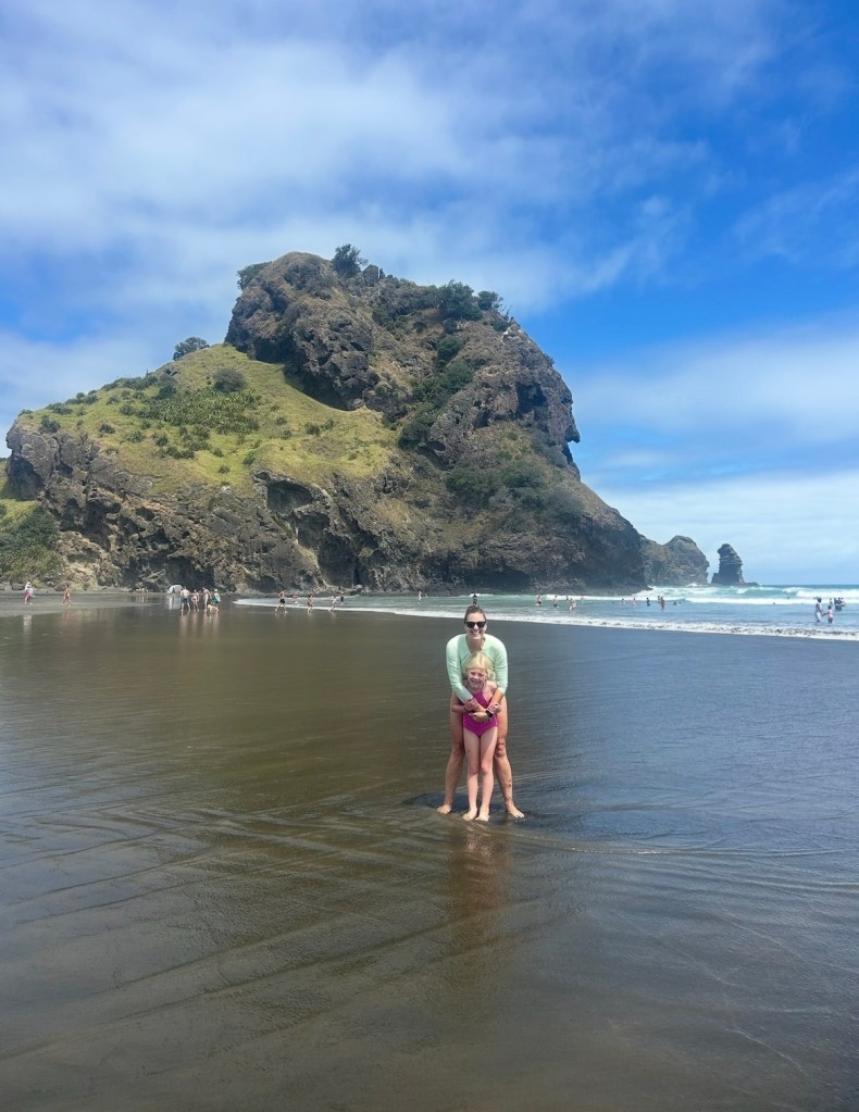 The following day we took a day trip over to Piha Beach. Before hitting the sand and waves, we hiked through Waitākere Ranges Regional Park to the top of KiteKite falls, braving the steep steps for a truly remarkable view. Afterwards, we picnicked at Piha beach and scurried across the fiercely hot black sand to brave the waves. Having visited Piha a few times in the past, we had never entered the water due to the powerful waves and rumored jellyfishes. However, with local lifeguards on duty and an array of people in the water, we decided it was time to up the ante. As always, our brave girl was fearless and ran straight into the pounding waves. Laughing and jumping through the tides, we embraced the wild ocean as if it was our personal playground. Though the water was cold and my legs were jelly from the previous hike, I ignored my inner adult voice telling me to “just relax on the beach” and watch from the shore, and instead embraced my inner 8-year-old and splashed through the ocean instead.